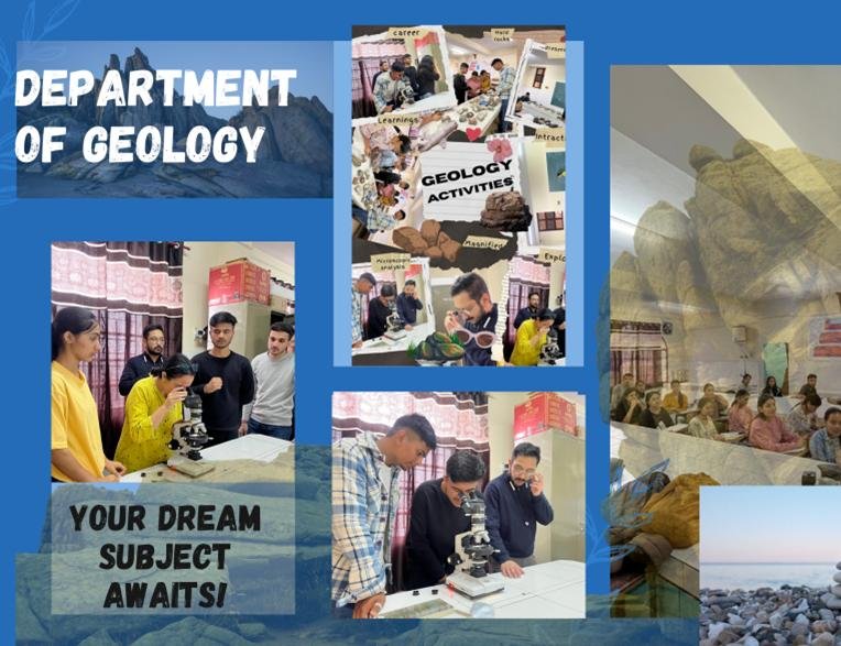 It boasts equipped laboratory, a diverse rock and mineral collection, thin-section microscopes.Regular field trips, seminars, workshops, and co-curricular activities such as photography contests and geological quizzes are conducted to enhance academic engagement and practical understanding. With a team of dedicated faculty member, the department not only nurtures scientific thinking and environmental awareness but also prepares students for careers in geological surveys, mining, petroleum industries, environmental consultancy, and advanced research. Committed to academic excellence and sustainable development, the Department of Geology continues to be a cornerstone of scientific learning at Government College Sanjauli.