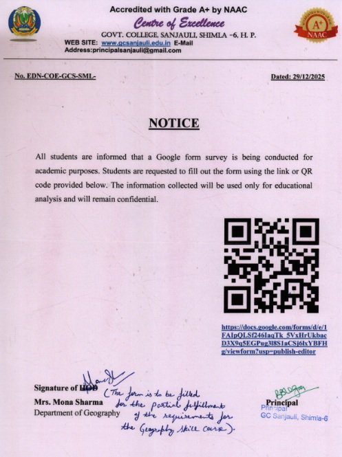 If you didn’t have opted geography as a discipline at school level but still you have utmost desire to learn and enjoy the different domains of the subject, then our department provides you with plenty of opportunities at graduation level.