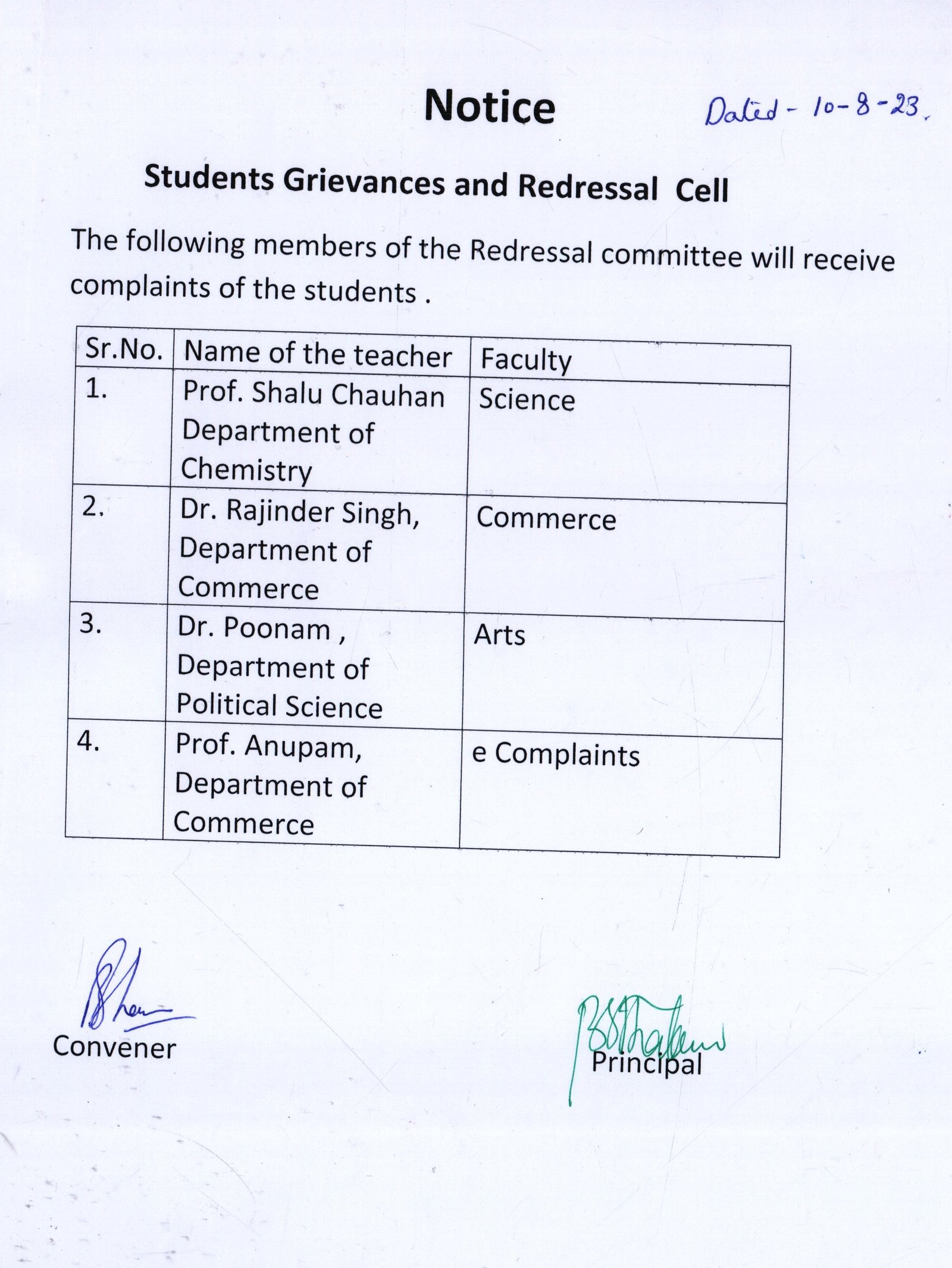 Students’ Redressal (Academic)Committee